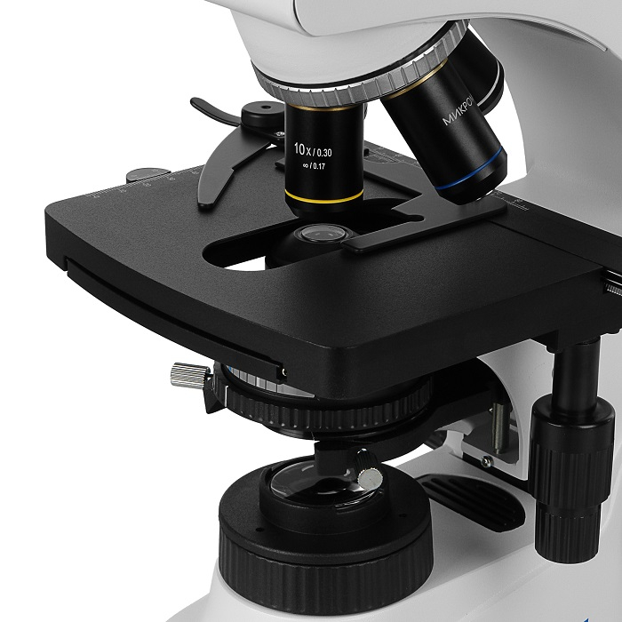 Бинокулярный микроскоп для исследований в проходящем свете по методу светлого поля. Оптическая схема бесконечность. Увеличение в базовой комплектации 40х-1000х, с дополнительными окулярами 40х-2000х. Осветительная схема Кёлера на светодиоде. Различные методы исследований с дополнительными устройствами. Револьверное устройство на 4 объектива.